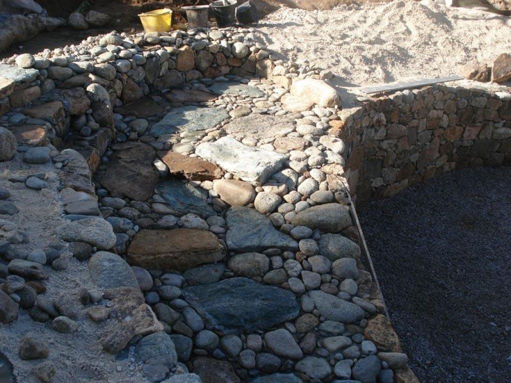 - Création d'une pataugeoire au moyen de pierres et galets rigoureusement sélectionnés pour leurs formes arrondies et polies.