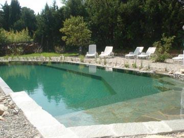 AVANT, le site disposait d'une piscine à filtration au chlore (photo 1) ; les propriétaires ont choisi de redessiner leur espace avec une piscine écologique en harmonie avec leurs idées environnementales.