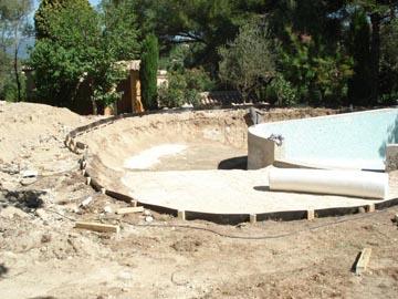 - Photo 4. Une partie de la margelle (11 ml) a été cassée pour créer un débordement de la baignade à la régénération.